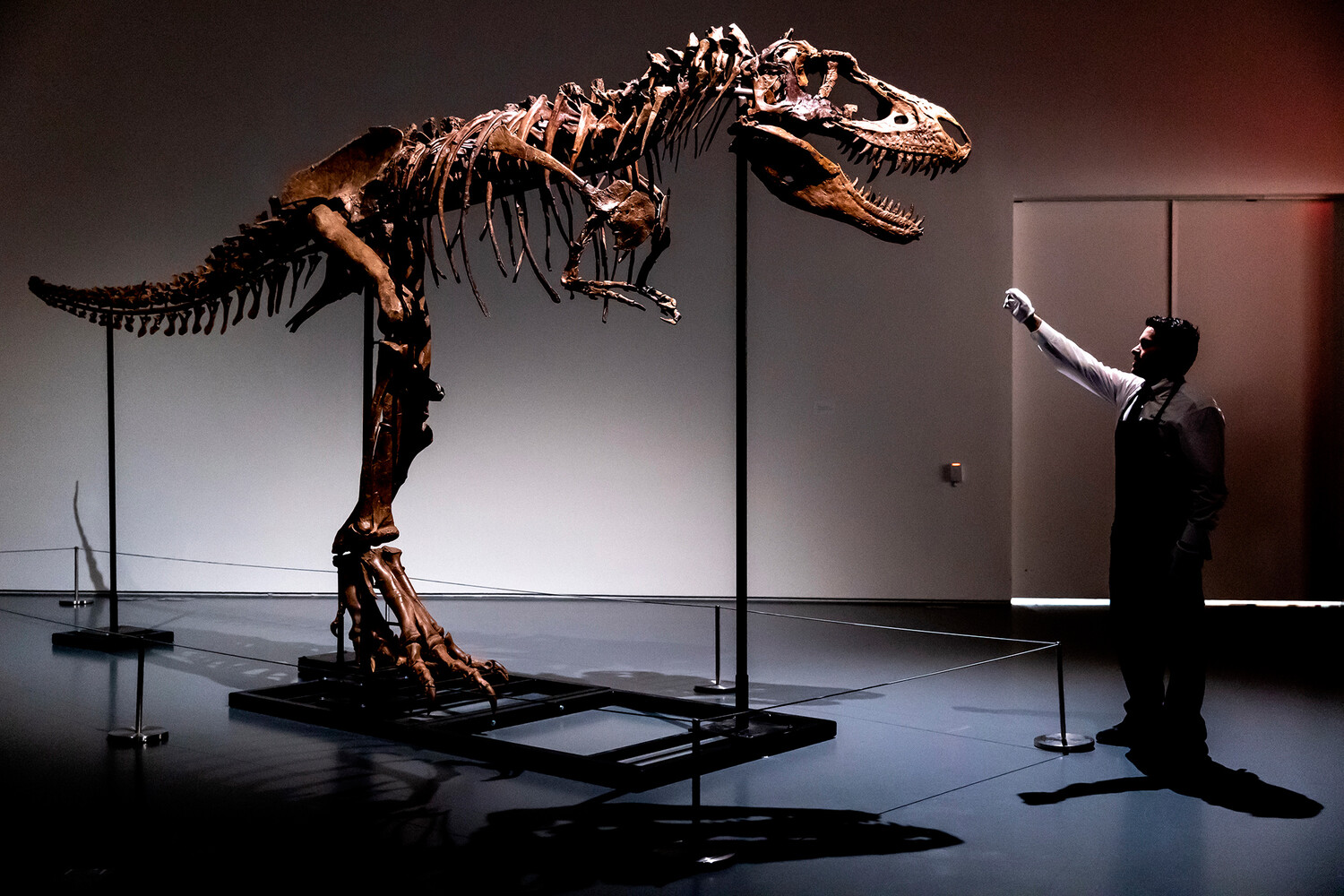 Окаменелый скелет родственника тиранозавра возрастом 76 млн лет будет выставлен на аукцион Sotheby's в Нью-Йорке в этом месяце, об этом говорится на официальном сайте организации.