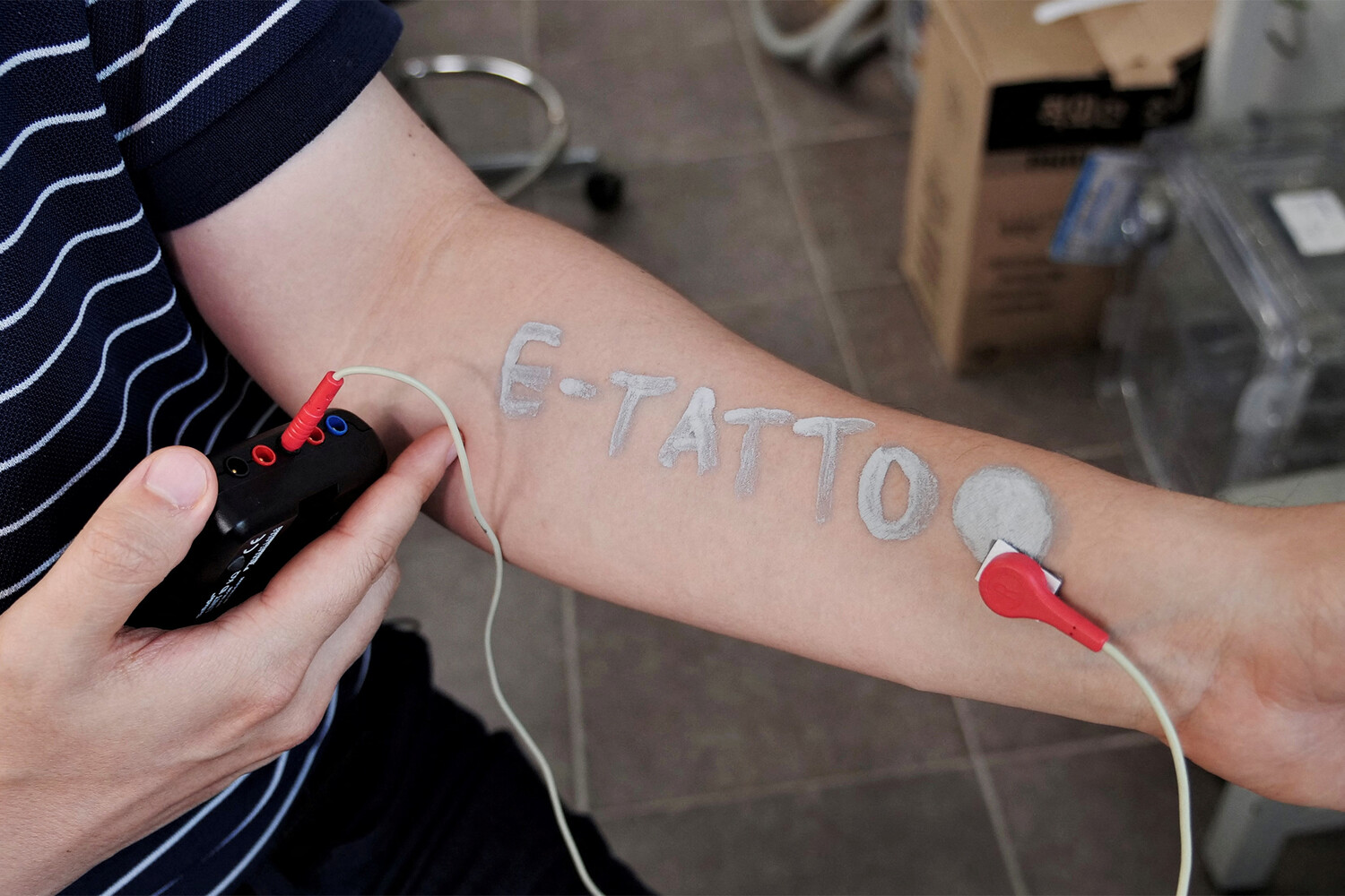 Авторство разработки принадлежит Корейскому институту передовой науки и технологий. Татуировку наносят особыми чернилами, которые содержат жидкие металлические соединения на основе галлия и углеродные нанотрубки. В итоге рисунок получает способность проводить электричество и взаимодействовать с электронными устройствами, а также работать как датчик сердцебиения или уровня сахара в крови. Для снятия показаний необходимо подключение к электронному устройству, поскольку у самой татуировки нет источника энергии и памяти.