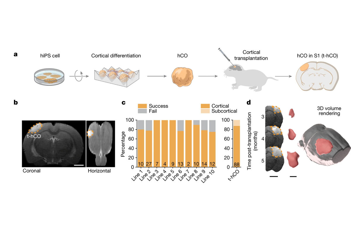 Серджиу Пашка из Стэнфордского университета и его коллеги смогли вживить органоид мозга крысе. Они перенесли мозговой органоид новорожденным крысам, а не взрослым, как делали их коллеги. В этот период мозг еще не завершил свое развитие, что позволило органоиду прижиться и встроиться в его структуру. Кроме того, у мышей не было тимуса, а значит их адаптивный иммунитет не смог атаковать трансплантат.