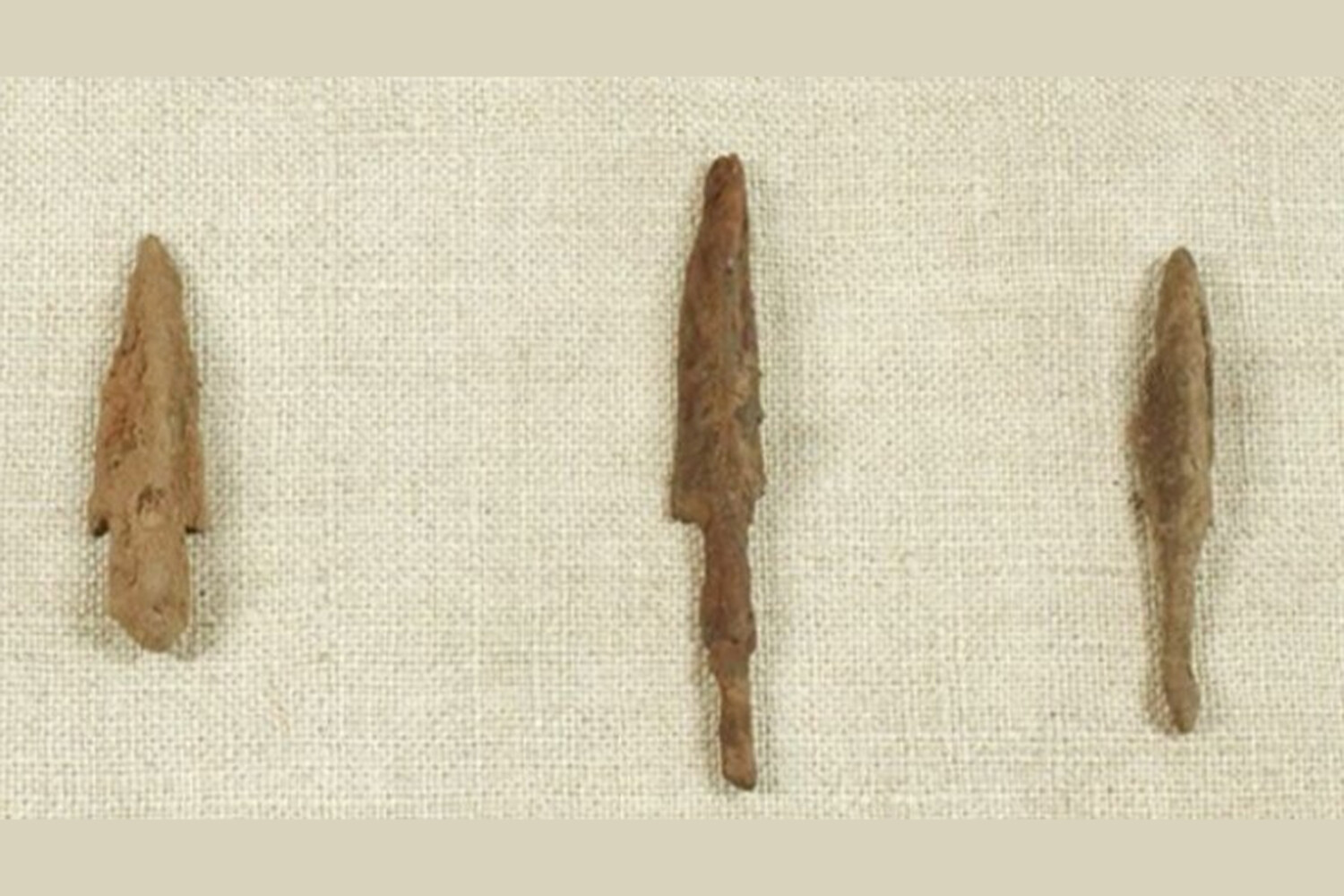 Кроме лепной керамики, внутри помещения был найден бронзовый браслет, ближайшие аналогии которому были найдены на городищах Белоруссии, разрушенных в конце VII века, а также в окрестностях Торопца в Верхнем Подвинье. Еще в постройке обнаружены железная коса, лежавшая рядом со скоплениями зерна, и обломанный наконечник копья. На площадке городища и на склонах мыса в культурном слое археологи собрали восемь наконечников стрел так называемого гуннского типа.