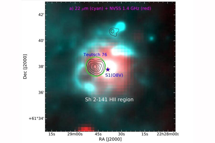 Саураб Шарма из индийского института ARIES в Индии и его коллеги сфотографировали Teutsch 76 с помощью 3,6-метрового телескопа DOT, чтобы лучше понять свойства этого скопления. Исследование было дополнено данными европейского спутника Gaia и наземных телескопов Pan-STARRS1.