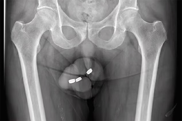 Неназванный 73-летний житель Австралии обратился в больницу с жалобами на боль и трудности с мочеиспусканием. Он признался врачам, что за сутки до этого засунул в уретру три батарейки. Мужчина делал это не впервые, и в прошлом у него никогда не было проблем с их извлечением. Однако в этот раз он лишь протолкнул их глубже. Осмотр показал, что уретра почернела, а во время операции под общей анестезией врачи выявили некроз и ожоги. Хирурги извлекли три батарейки диаметром 1,3 см.