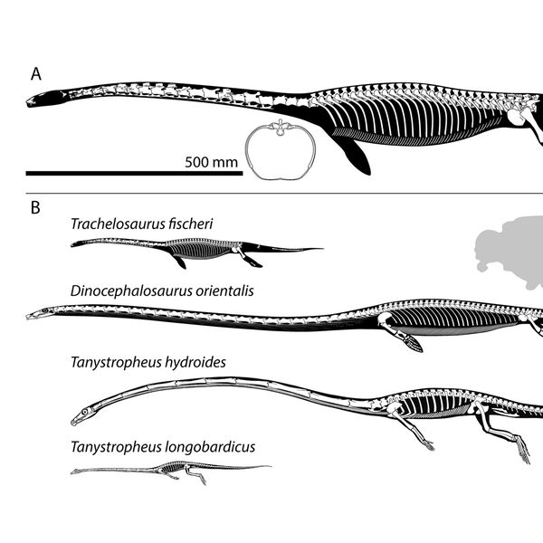 Выводы ученых основаны на сравнении останков Trachelosaurus fischeri с окаменелостями недавнего найденного в китайской провинции Гуйчжоу диноцефалозавра Dinocephalosaurus orientalis.