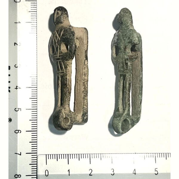 Фигура длиной 5,6 см находится в очень хорошем состоянии и имеет антропоморфную форму: она похожа на человека с руками на бедрах. Диагональные и горизонтальные полосы на туловище и бедрах могут обозначать костюм, типичный для поздней готической эпохи. На фигуре нашли два отверстия: одно в виде прорези длиной 13 мм, второй — круглое, 4 мм в диаметре. До настоящего времени в Европе было обнаружено только 15 подобных артефактов.