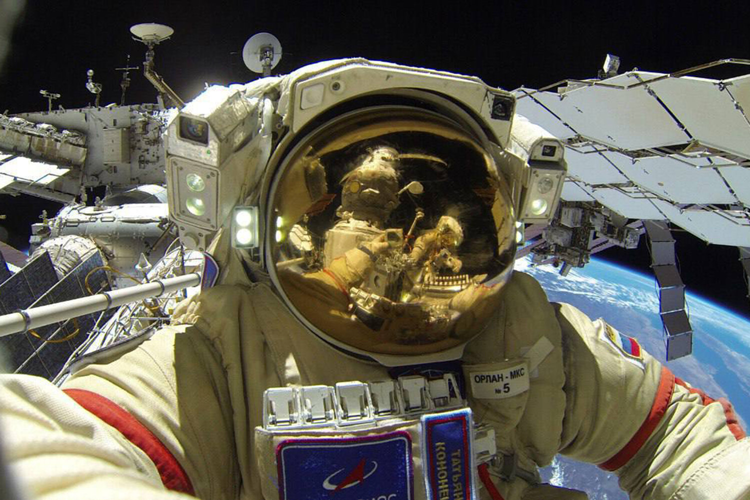 Госкорпорация «Роскосмос» опубликовала селфи космонавта Олега Кононенко в открытом космосе. Соответствующая публикация размещена в Telegram-канале организации.