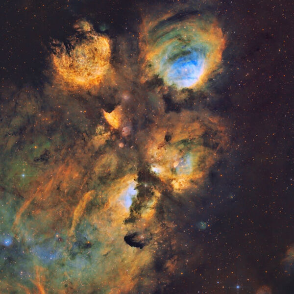 Эмиссионная туманность Кошачья Лапа представляет собой гигантскую область звездообразования. Она содержит звезды с массой около десяти масс Солнца, возникшие за последние несколько миллионов лет.