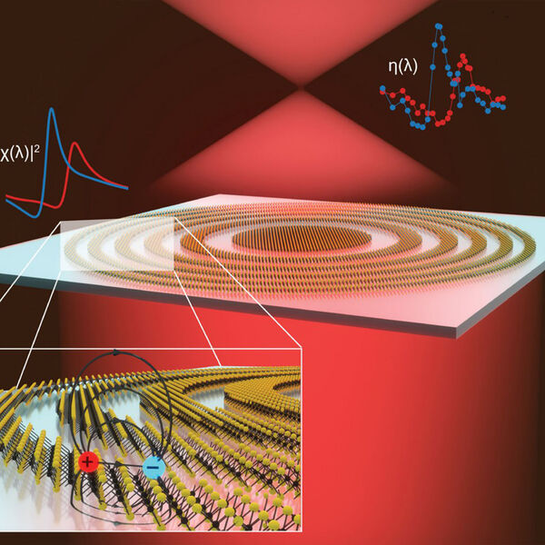 Дисульфид вольфрама поглощает фотоны, отправляя электрон на более высокий энергетический уровень. За счет сверхтонкой структуры материала отрицательно заряженный электрон и его положительно заряженное гнездо в атомной решетке остаются связанными друг с другом электростатическим напряжением, образуя так называемый экситон. Экситоны быстро исчезают, когда электрон возвращается в гнездо и испускает свет.