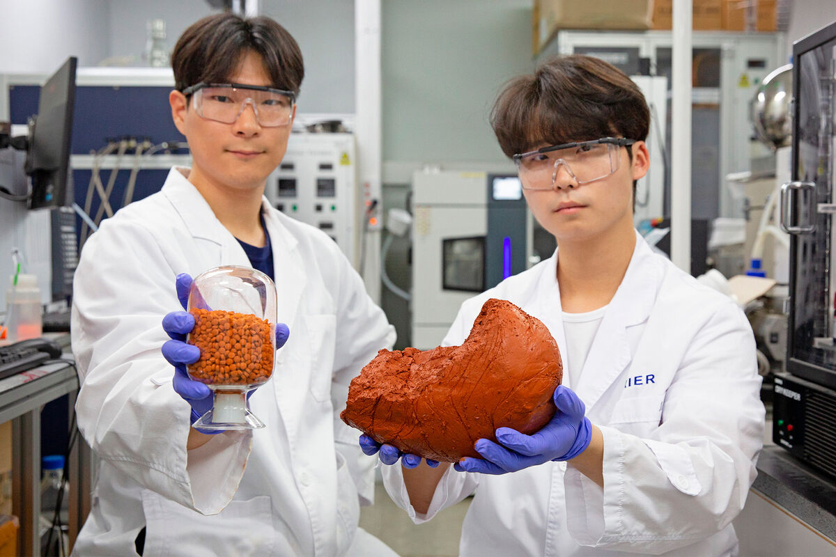 Команда использовала состав, полученный из красного шлама — отхода, получаемого при обработке бокситовых руд. Шлам содержит оксиды железа, алюминия, кремния и других элементов, придающих ему характерный оттенок.