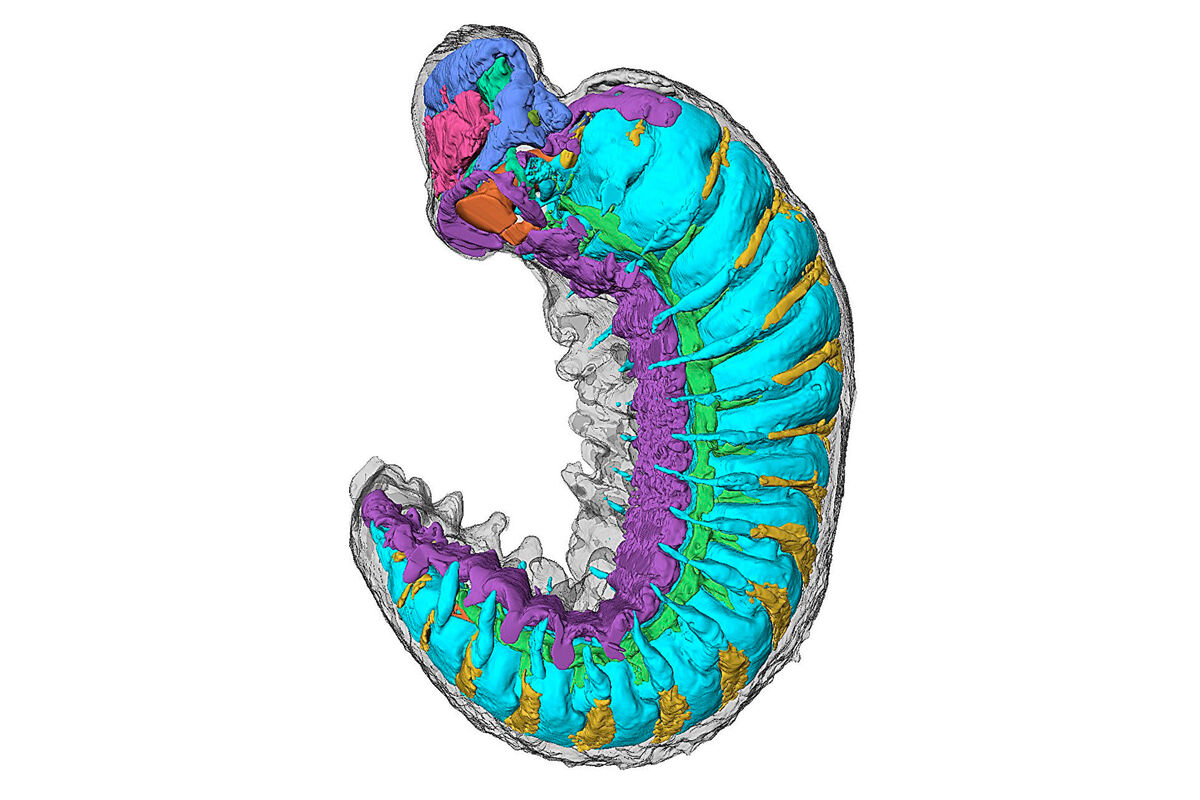 Используя передовые методы сканирования синхротронной рентгеновской томографии, команда создала трехмерные изображения миниатюрных участков мозга, пищеварительных желез, примитивной кровеносной системы и даже следы нервов, питающих конечности и глаза личинки.