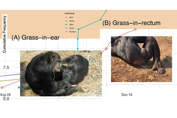 В начале августа 2023 года самец Джума первым из своей группы вставил в ухо травинку. Постепенно к этому присоединились пять других шимпанзе группы, а также один из особей-мигрантов. Кроме того, в конце августа 2023 года Джума начал носить травинку в анусе. В тот же день еще один шимпанзе сделал то же самое, а через три дня это делали уже пять обезьян.