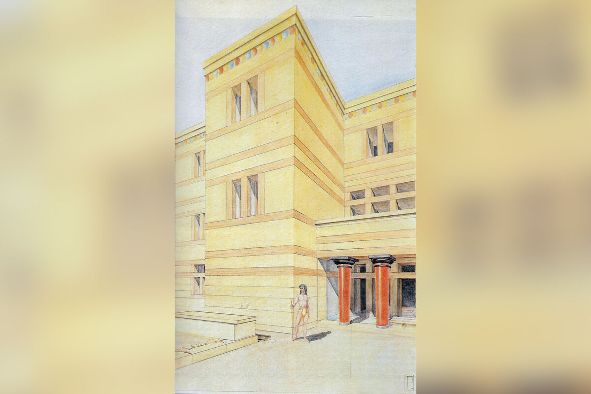 Святилища у входов во дворцы были распространены у минойской цивилизации, существовавшей на Крите с 2700 по 1400 гг. до нашей эры. Минойцы оставили после себя дворцы, крупнейший из которых — Кносский. Многоэтажные здания имели сложные системы канализации, отопления, вентиляции и искусственного освещения. Минойцы были ассимилированы греками не позднее IV—III веков до нашей эры.