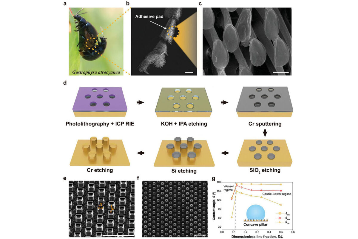 Исследовательская группа использовала вогнутые структуры, наблюдаемые у листоедов и почвенных ногохвосток, в качестве основы для своей работы.