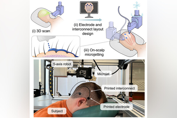В новом проекте команда разработала роботизированный 3D-принтер, который наносит чернила из проводящего материала на определенные участки кожи головы человека. Сегодня этот процесс занимает около часа, однако его можно ускорить до 20 минут.