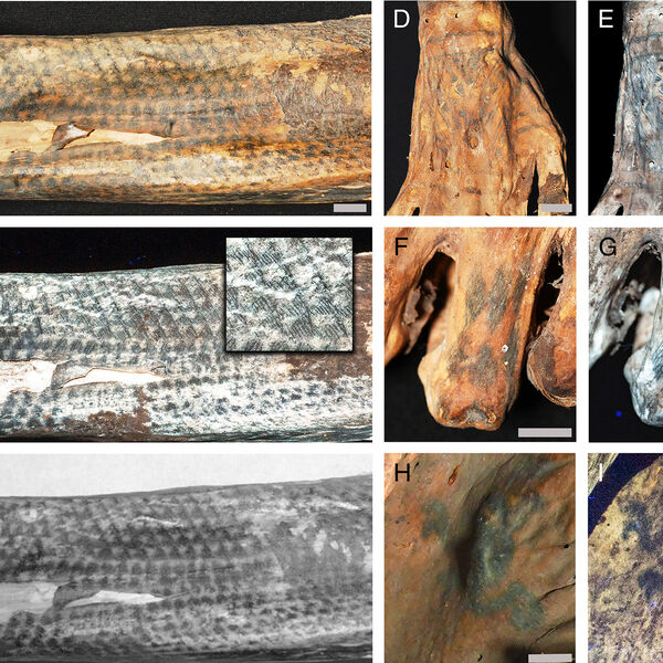 Сохранившаяся кожа и использованные черные чернила позволили рассмотреть мелкие детали узоров.