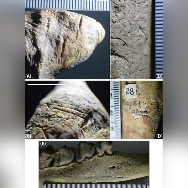 Ученые исследовали 4524 образца и нашли 20 костей животных с характерными антропогенными насечками, указывающими на снятие мяса режущими орудиями.