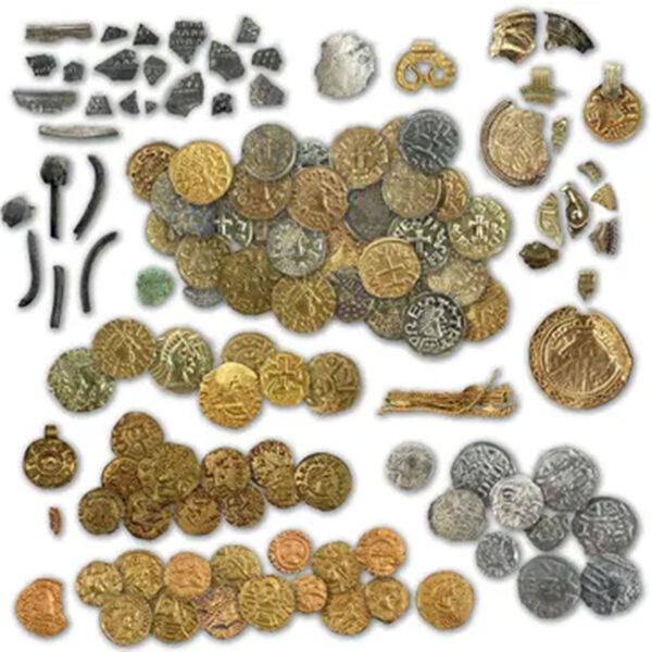 Тайники с золотыми и серебряными монетами, а также украшениями и кусками драгоценных металлов были обнаружены во время раскопок в деревне Хезинген, расположенной в 130 километрах от Амстердама. Всего было найдено более ста артефактов, которые, по мнению специалистов, были спрятаны в VII веке нашей эры.