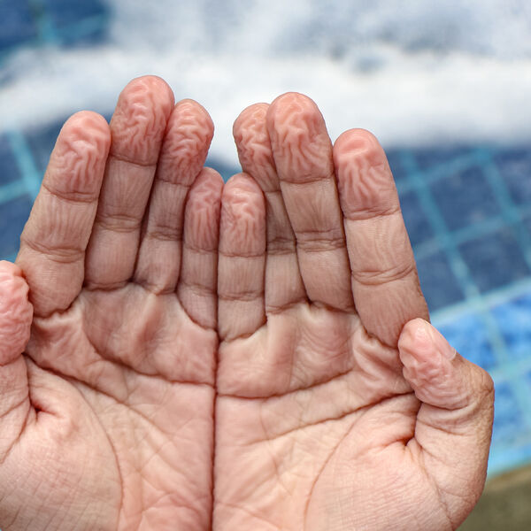 Интересно, что у людей с повреждением срединного нерва (который отвечает за чувствительность пальцев) морщины не появляются вообще. Это подтвердил тест с участием студента, у которого было такое повреждение.