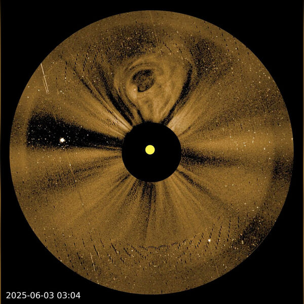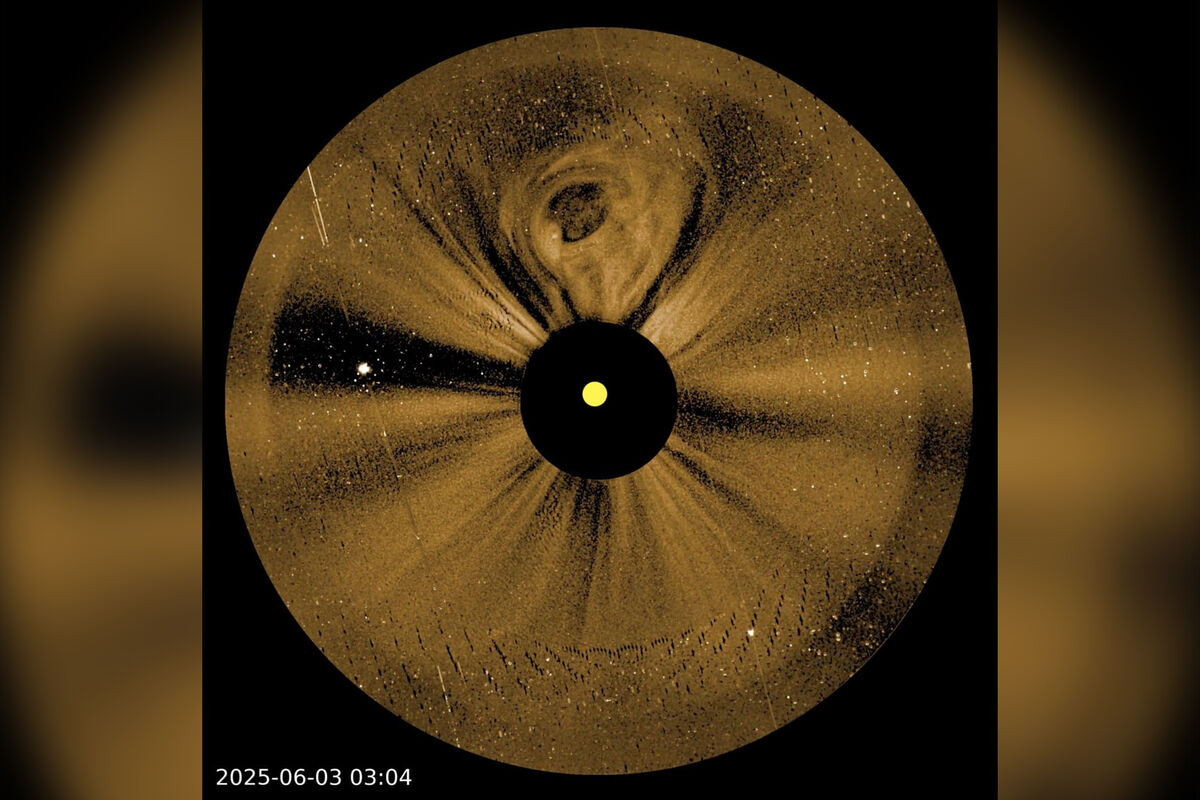 Изображения коронального выброса массы, полученные с помощью коронографа PUNCH Narrow Field Imager на борту четвертого космического аппарата, позволяют детально рассмотреть атмосферу Солнца, заблокировав его яркий диск.