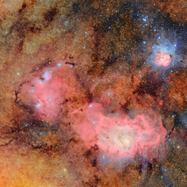 Один из первых опубликованных снимков — композит из 678 экспозиций, сделанных всего за семь часов. На нем запечатлены туманности Лагуна и Трехраздельная, расположенные на расстоянии нескольких тысяч световых лет от Земли. Ранее незаметные детали этих звездных «яслей» теперь видны с беспрецедентной четкостью.