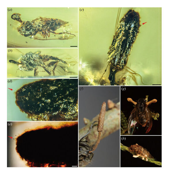 Китайские ученые из Юньнаньского университета и других институтов нашли в янтаре из Мьянмы возрастом 99 млн лет древнейшие свидетельства паразитических отношений между грибами и насекомыми. Открытие переписывает историю эволюции знаменитых «грибов-зомби» из рода Ophiocordyceps. Исследование опубликовано в научном журнале Proceedings of the Royal Society B (PRSB).