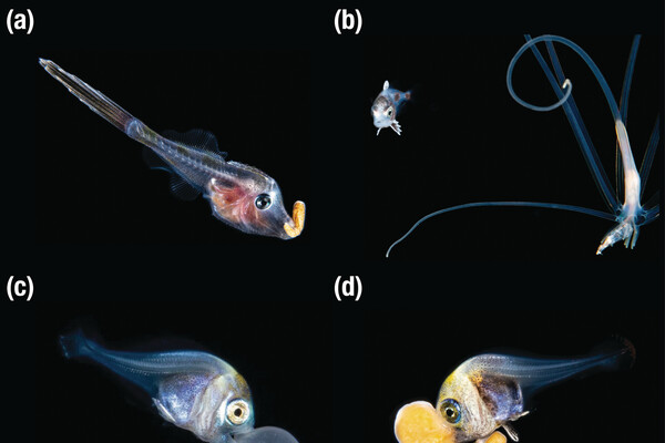 За ношением во рту личинок кораллов были застигнуты представители следующих семейств: ариомматовые (Ariommatidae), морские лещи (Bramidae), ставридовые (Carangidae) и единороговые (Monacanthidae). Они переносили личинок цериантарий из семейств Arachnactidae и Cerianthidae и зоантарий из семейства Sphenopidae.