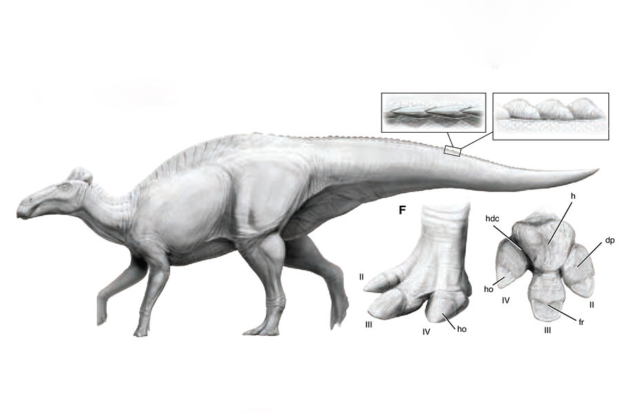 Окаменелости были обнаружены в американском штате Вайоминг. Ученые смогли восстановить подлинный облик кожи и конечностей древних рептилий. В результате удалось определить, что пальцы задних лап эдмонтозавра имели копыта.