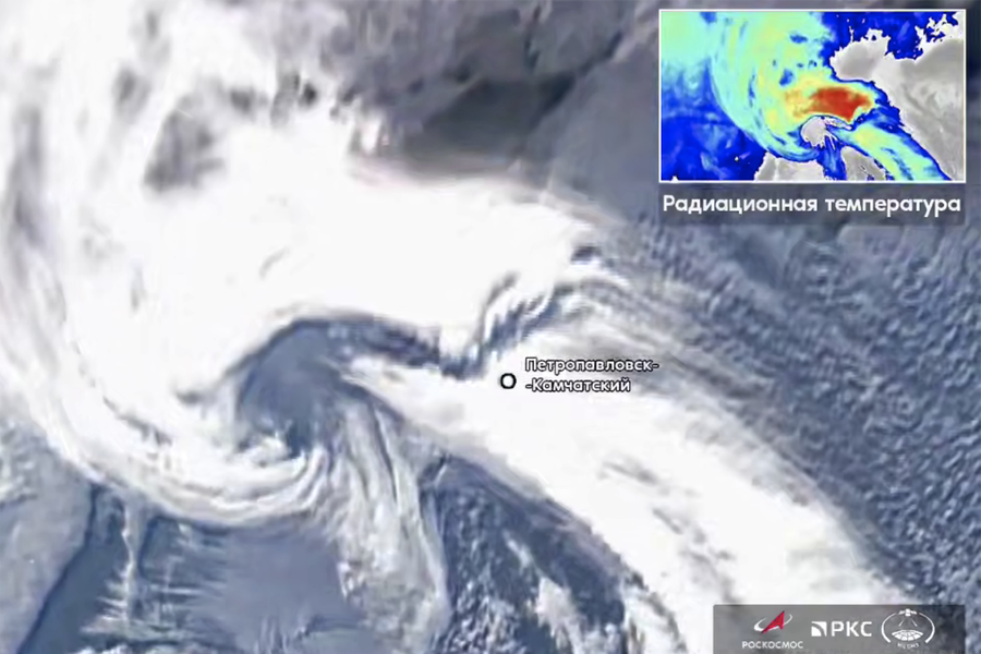 Российские гидрометеорологические спутники «Арктика-М» и «Электро-Л» передали на Землю снимки прохождения циклона над Петропавловском-Камчатским. Об этом сообщается в Telegram-канале «Роскосмоса».