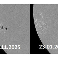 Речь идет о группе пятен с индексами 4294, 4296 и 4298, которая появилась на видимой стороне солнечного диска в конце ноября. Размер крупнейших структур в этом комплексе превышал диаметр Земли в несколько раз. Как поясняют специалисты, сокращение числа пятен обычно свидетельствует о снижении вспышечной активности или ее отсутствии.