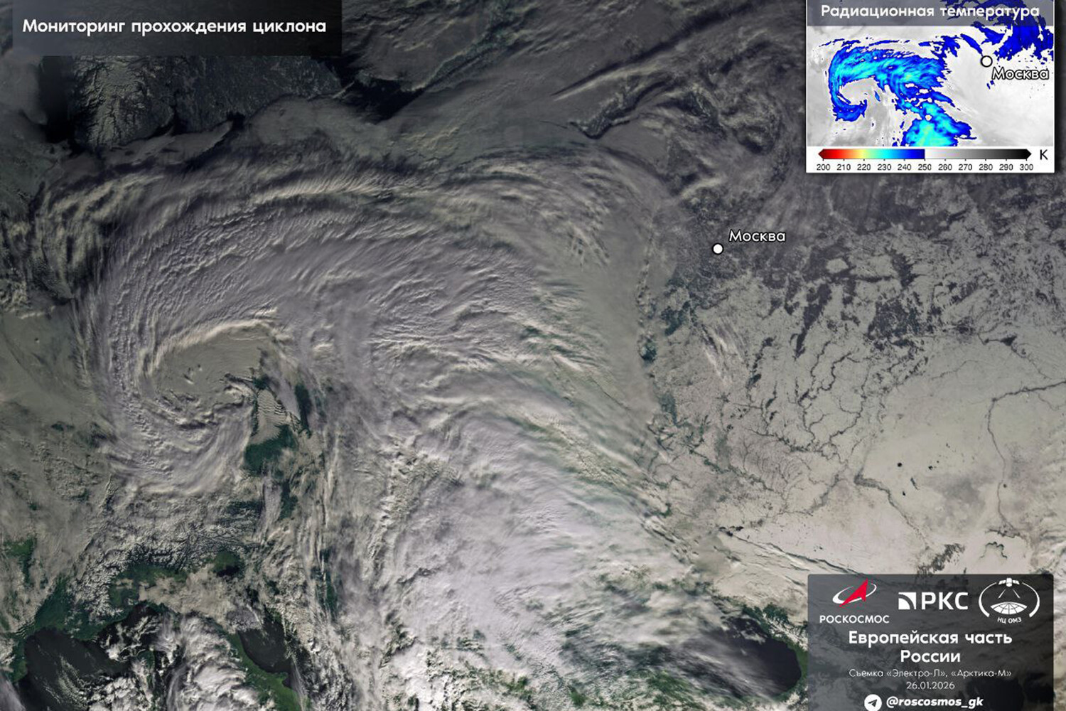 «Роскосмос» показал снимок снежного циклона над Москвой