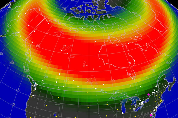 Отмечается, что в настоящий момент в Канаде и над северными штатами США наблюдаются полярные сияния — они уже достигли максимального десятого уровня по интенсивности.
