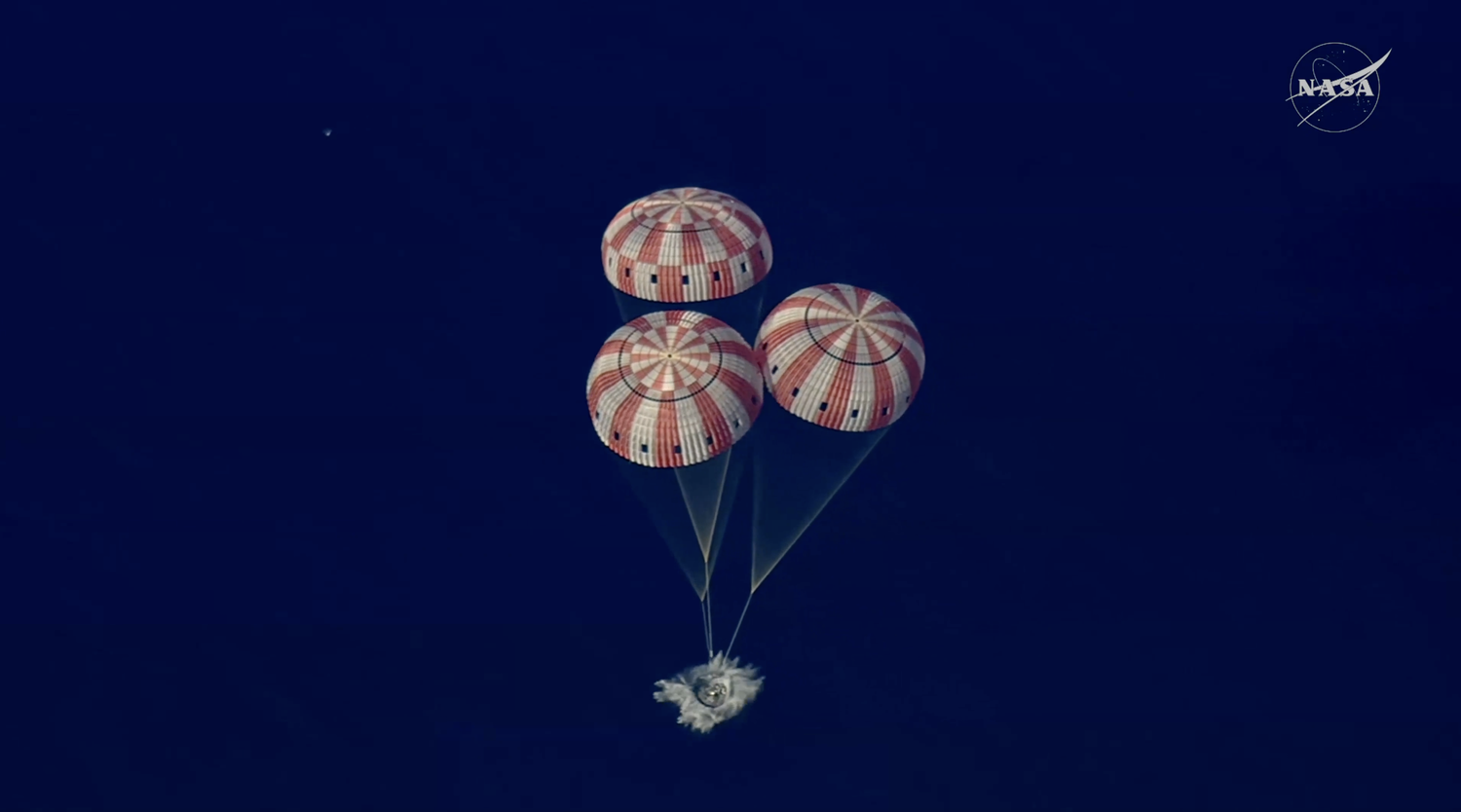 В 20:07 по восточному времени США (3:07 мск) они успешно совершили приводнение с использованием парашютов в Тихом океане у побережья Сан-Диего.