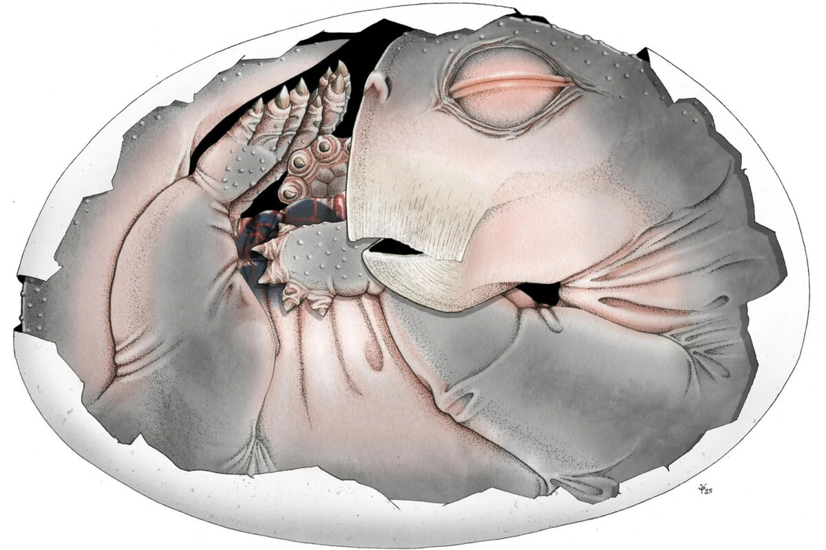 Образец был найден еще в 2008 году, но подтвердить наличие эмбриона удалось только сейчас благодаря современным методам визуализации. С помощью синхротронной рентгеновской томографии исследователи смогли «заглянуть» внутрь окаменелости и детально рассмотреть кости.