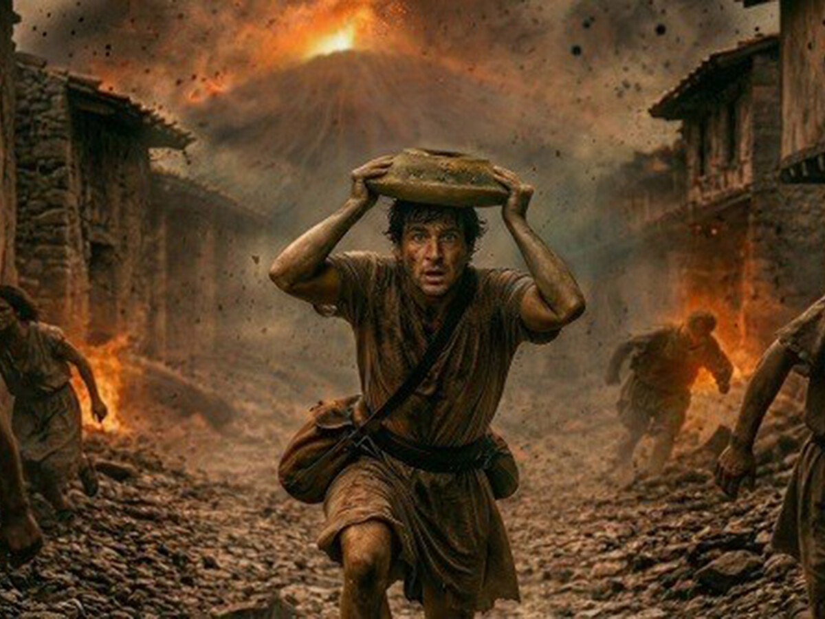 Воссоздан побег человека от извержения Везувия с терракотовой ступкой