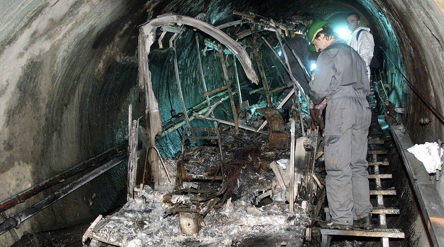 После того, как поезд неожиданно остановился в тоннеле из-за снижения давления в тормозной системе, 12 человек разбили стекло лыжной палкой и спустились вниз. Им удалось спастись. Остальные 149 пассажиров двинулись вверх в направлении дыма, опасаясь горевших задних вагонов. Из них не выжил никто. Еще несколько человек погибли в ресторане, когда дым со скоростью 144 км/ч поднялся на 2,5 км. Кадры тех дней — в фотогалерее «Газеты.Ru».