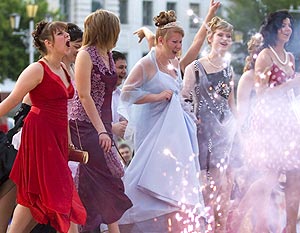 Кстати, сегодняшней ночью московские выпускные празднества не заканчиваются: по программе, во среду в Москве пройдет Бал выпускников, окончивших с отличием учреждения профессионального образования, — на него приглашено около 4 тыс. человек. 26 июля одиннадцатиклассники отправятся на Бал выпускников общеобразовательных учреждений, награжденных золотыми и серебряными медалями от имени столичного мэра Юрия Лужкова.
