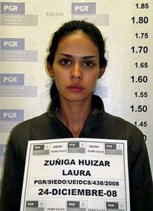 Победительницу конкурса «Мисс Латинская Америка» арестовали 23 декабря 2008 года в мексиканском штате Синалоа. Полицейские остановили на КПП вблизи границы штата два внедорожника, в которых нашли целый арсенал оружия: две винтовки, 38 пистолетов и сотни патронов, а также $55 тыс. наличными. В одном из внедорожников ехал лидер наркокартеля «Хуарес» Гарсия Уркисар и его подруга Лаура Сунига. Во второй машине было еще пять человек. Стражи правопорядка отвезли в участок всех.