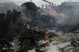 О причине катастрофы грузового самолета советского производства пока ничего не сообщается. Очевидцы говорят, что перед падением Ан-12 очень сильно накренился, — предположительно, летчики пытались развернуть самолет, чтобы увести его от жилых кварталов.