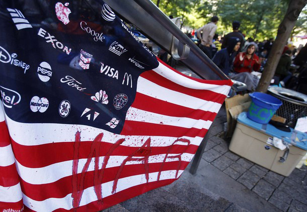 Действительно, если раньше на марши протеста местные жители реагировали с большим скептицизмом, то в субботу можно было увидеть, как в углах сквера робко стоят молодые люди в костюмах и с портфелями — типичные обитатели высоток Уолл-стрит. Они пока опасаются спускаться в лабиринт из книг, газет и спальников, но не исключено, что через пару недель дорогие костюмы смешаются с засаленными куртками жителей палаточного городка.