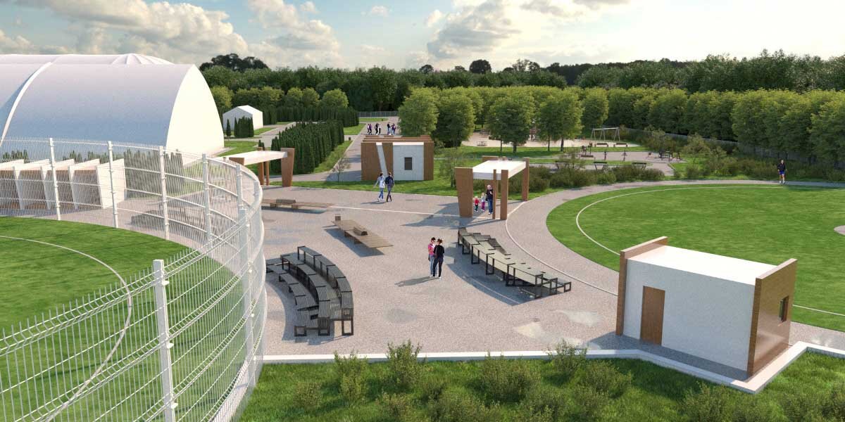 «Для проведения культурно-массовых мероприятий предусмотрено устройство площадки со сценой, — продолжает замглавы Департамента. — Для процесса обучения, изготовления и ремонта авиамоделей, а также для комфортной организации соревнований на территории планируется разместить одноэтажный павильон, включающий кластеры для авиамодельных кружков, конференц-зал (актовый зал) и библиотеку. Рядом расположится площадка для построения с пьедесталом».