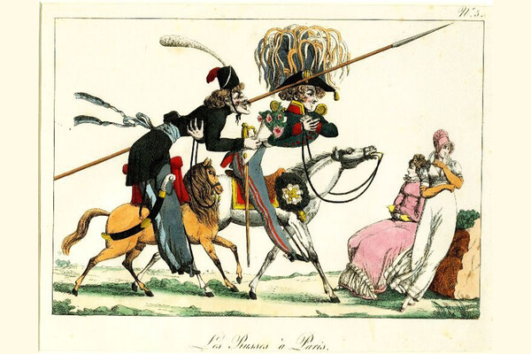 Парижане боялись русских и пруссаков с австрийцами, но еще больший ужас вызывали у жителей французской столицы казаки. Наполеоновская пропаганда много усилий приложила к тому, чтобы отделить казаков от русских в сознании французов и изобразить первых жуткими чудовищами и дикарями.