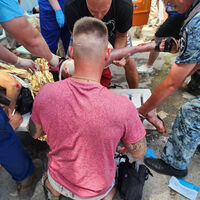 В Учкуевке спасатели прятали людей в подсобке пляжного бара. Одному из них, 29-летнему Дмитрию осколок попал в голову, но мужчина продолжил помогать окружающим.
