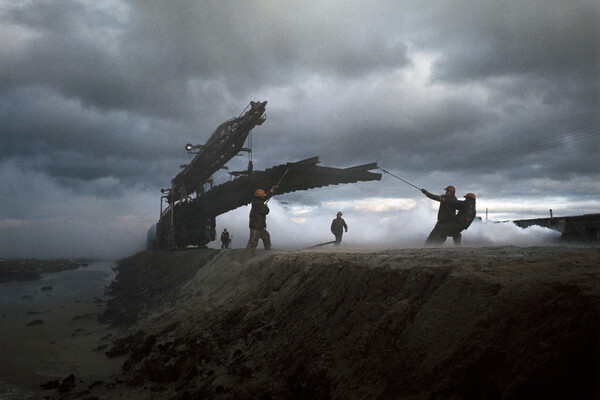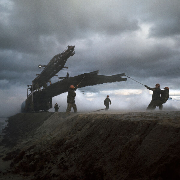 Бригада путеукладчиков за работой. Байкало-Амурская магистраль (БАМ), 1984 год