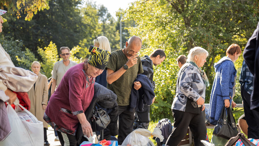 Гендиректор Изотова называет его «наш активист». Вместе с ней идем в пункт выдачи гумпомощи в одном из корпусов. Похож на любой секонд-хенд: ряды вешалок с одеждой, рядком обувь, отдельно игрушки, всякие мелочи. Все бесплатно, работают в пункте добровольцы из числа самих жителей. «Мы подбираем луки», — важно говорит одна, раскладывая одежду.