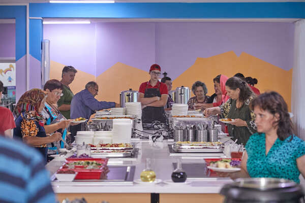 В лагере вечереет, люди расходятся по комнатам, бабушки обсуждают, какой сегодня показывают фильм. Напоследок вместе со всеми меня кормят ужином (действительно вкусным). Пока выбираю между пловом и котлетой, подбегает стайка детей под предводительством веселой девочки с розовым шариком.