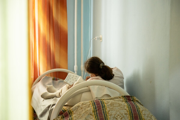 «Я нигде не могла добиться ему коляски. В Фатеже сразу привезли. Я считала, потом заберут. Но сюда приехала с коляской. Очень благодарна, — вспоминает Раиса, гладя сына по голове. Тот молча смотрит в небо. — Он плохо понимает, что происходит. Но, бывает, ночью встанет, в кровать вцепится и просит: «Домой, домой...».