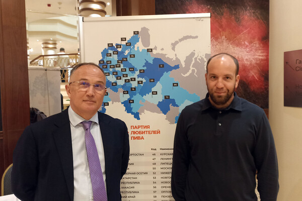 Съезд Партии любителей пива (ПЛП) проходил в Москве, в фешенебельном отеле «МонАрх». У входа в гостиницу корреспондент «Газеты.Ru» встретил основателя оригинальной ПЛП 1990-х — политолога Константина Калачева, и будущего (на тот момент) председателя партии, предпринимателя Сергея Гришина.