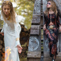 К посту экс-прокурор прикрепила две фотографии. На первом снимке она на природе в длинном белом платье с корсетом. Поклонская заплела часть волос в маленькие косички и добавила в прическу несколько украшений. На втором фото Поклонская с ярким макияжем уже позирует в открытой кофте и длинной юбке. Оба наряда напоминают образ кельтов.