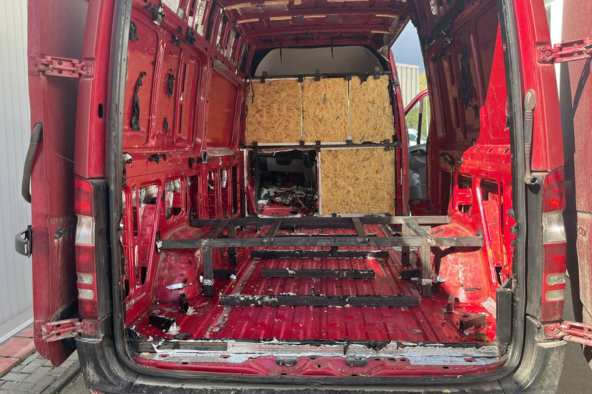При детальном досмотре машины, сопровождавшемся частичным демонтажом конструкций, были обнаружены оборудованные тайники, замаскированные под внутреннюю обшивку.