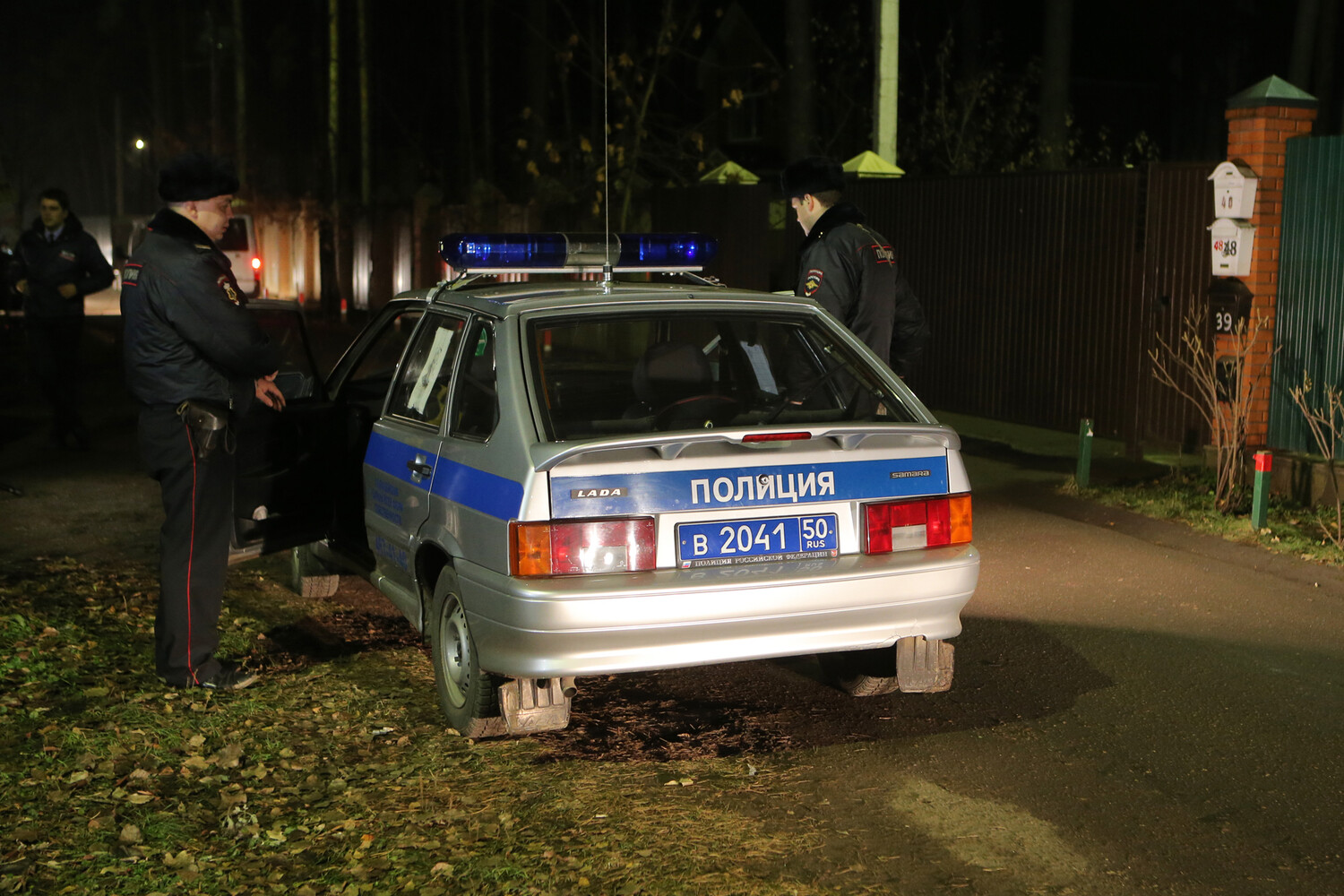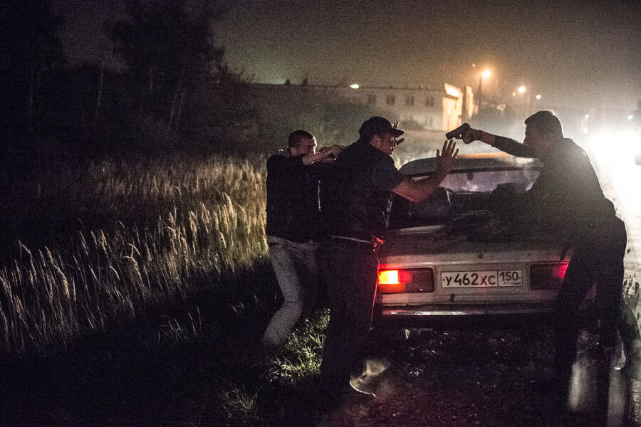 Сотрудники правоохранительных органов в поселке Удельная Раменского района Подмосковья работают на месте задержания участников банды ГТА, 2014 год