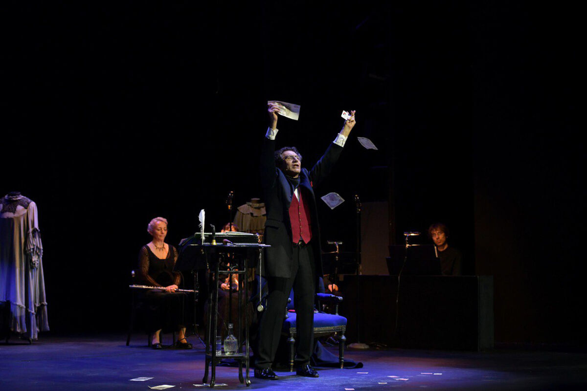 На сцене Донецкого музыкально-драматического театра имени М.М. Бровуна впервые гастролирующий в Донецке Государственный академический театр имени Евгения Вахтангова показал спектакль «Пуф, или Ложь и истина» по пьесе Эжена Скриба, а на сцене Театральной гостиной Сцены на Садовой прошел вечер Эльдара Трамова «Истории любви».